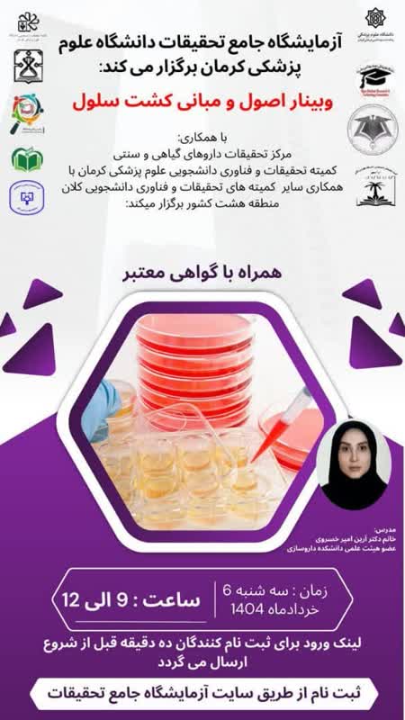 آزمایشگاه جامع تحقیقات برگزار می کند: وبینار آشنایی با اصول و مبانی کشت سلول
