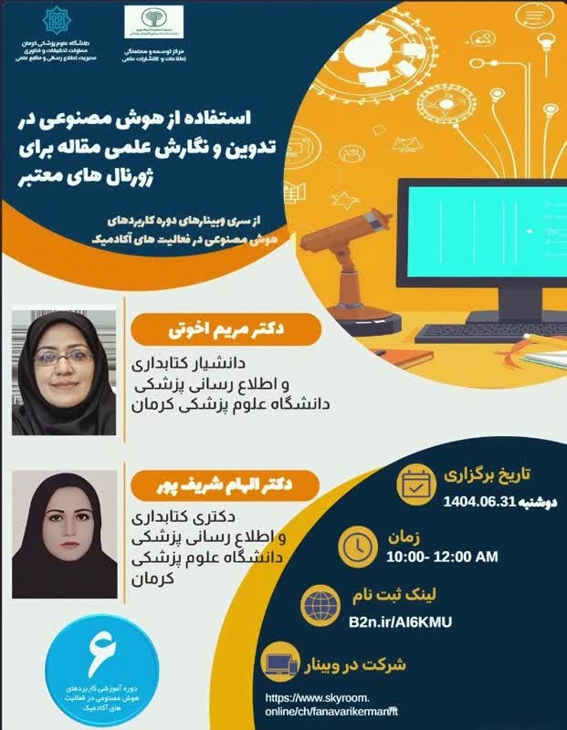وبینار «استفاده از هوش مصنوعی در تدوین و نگارش علمی مقاله برای مجلات معتبر»
