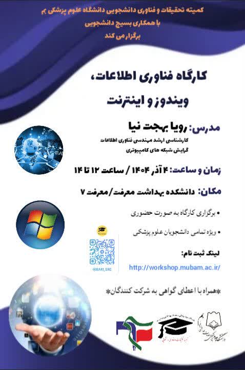 گروه هدف: تمامی دانشجویان علوم پزشکی ثبت نام کارگاه از طریق: http://workshop.mubam.ac.ir/