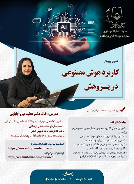 کارگاه آموزشی با موضوعکاربرد هوش مصنوعی در پژوهشبرگزار می‌شود.